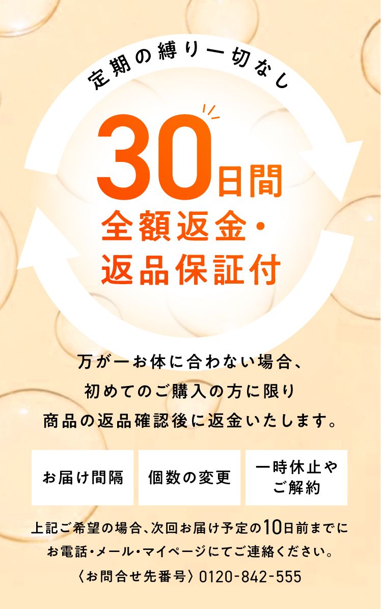 - 下記の連絡方法で、いつでも契約内容のご変更・解約を承ります。次回お届け日の10日前までにご連絡ください。返品・解約等の詳細はこちら